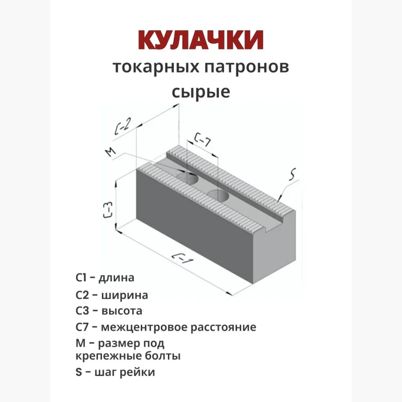 Кулачки сырые для гидравлического токарного патрона SC10W60H100L150
